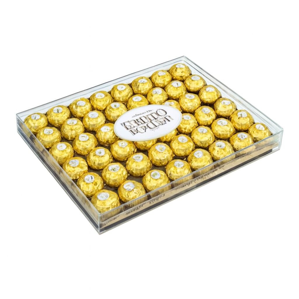 Ferrero Rocher Chocolates – 48 Piece Box offers a premium selection of individually wrapped hazelnut chocolates, elegantly presented in gold foil. Each chocolate features a whole hazelnut surrounded by creamy filling, encased in a crisp wafer shell, and covered in milk chocolate with finely chopped hazelnuts. The rectangular box, with its signature Ferrero Rocher branding, makes it perfect for gifting, sharing, or indulging on special occasions.
