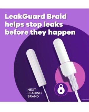 It’s a new time for that time of the month. Get up to 100% leak and odor-free protection with Tampax Radiant tampons designed with a LeakGuard Braid to help stop leaks before they even happen. For protection you can feel good about. Free of dyes, perfume, latex*, BPA, and elemental chlorine bleaching. Thanks to their Textured Grip, they are specifically designed for incredibly comfortable tampon insertion. Plus, they come in a CleanSeal Wrapper created for more** ease, more clean, and more hygiene – to help dispose of them wherever you are. Don’t settle for less when you can get more. Discover outstanding protection for up to eight hours with Tampax, the #1 U.S. Gynecologist recommended tampon brand.